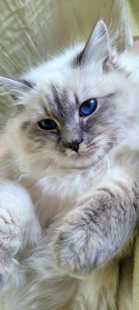La maman est Saphir de Neva Ulrikka, et le papa est Saphir de Neva Tagir. Mona est une petite chatte adorĂ©e et chouchoutĂ©e dans sa nouvelle famille chez Amandine, oĂč elle grandit entourĂ©e d’amour et de tendresse.