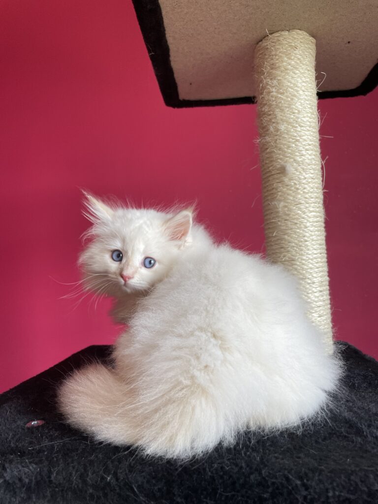 Aloha est un adorable chaton Saphir de Neva, nĂ© de lâunion raffinĂ©e de Beauty Neva Galaxy, une maman au tempĂ©rament doux et Ă la beautĂ© Ă©clatante, et de Idol Tzar-Koshka, un pĂšre majestueux au port noble et Ă la fourrure somptueuse.